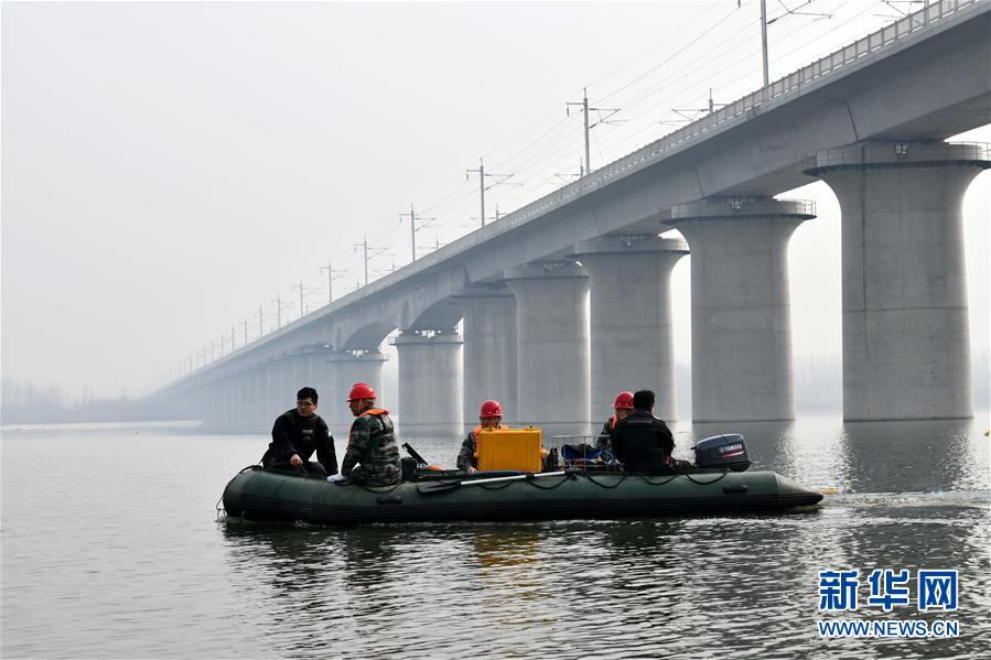 1月3日,中國鐵路濟南局鐵道戰(zhàn)備舟橋處工程人員駕駛船只前往預(yù)定地點。新華社記者 朱崢攝