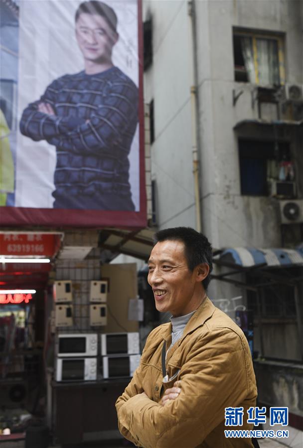 冉光輝在重慶朝天門大正商場(chǎng)附近等活(1月5日攝)。新華社記者王全超攝