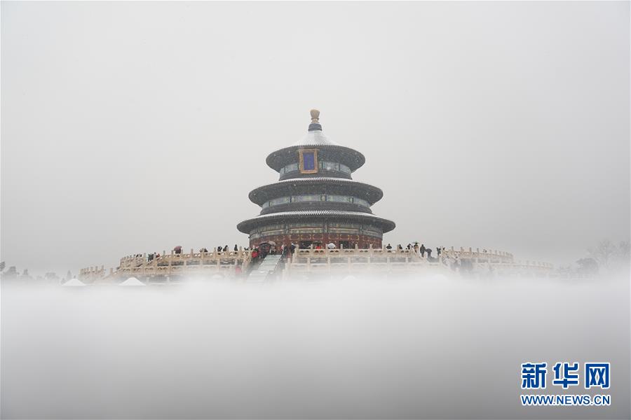 12月16日拍攝的雪中的天壇公園祈年殿。當(dāng)日,北京迎來降雪天氣。新華社記者鞠煥宗攝
