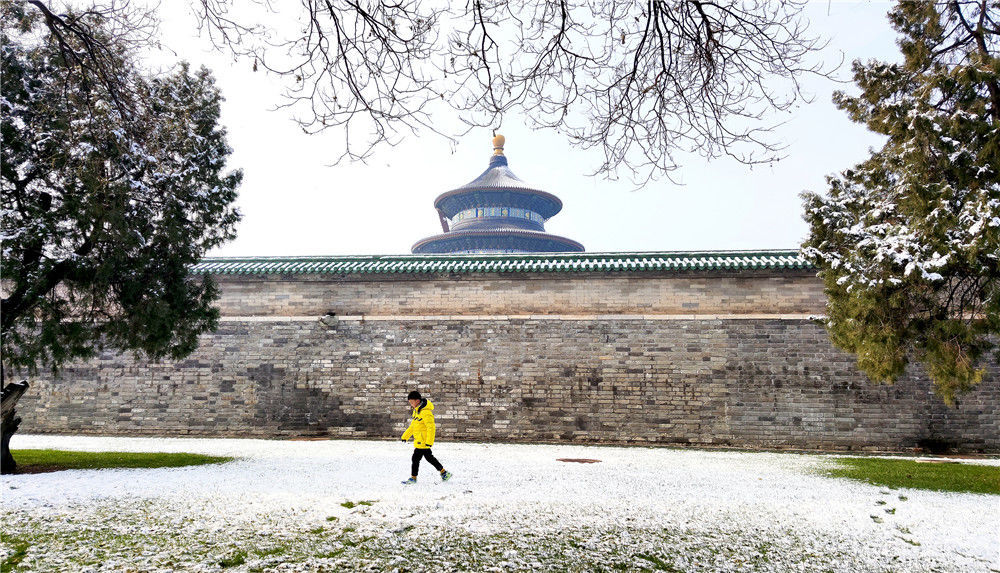 2019年11月30日,北京,天壇公園里觀雪賞景的市民絡繹不絕。喬健/千龍圖像/視覺中國