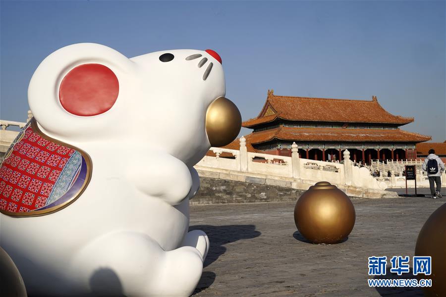 2019年12月27日在北京故宮太和門廣場拍攝的“吐寶鼠”。 由故宮博物院、騰訊出品的視頻節(jié)目《故宮賀歲》將于2020年1月1日正式上線,節(jié)目每周1集,每集時長30分鐘,計劃推出5集。節(jié)目里,主持人將與專家、嘉賓等一起在故宮探尋傳統(tǒng)過大年的習俗。 新華社記者 金良快 攝