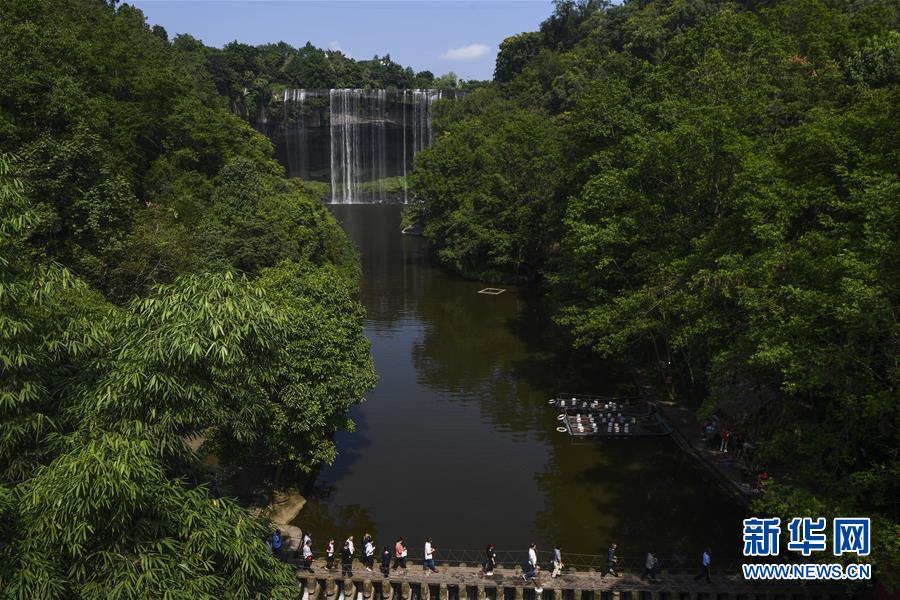 游客在重慶萬州大瀑布群旅游區(qū)內(nèi)游覽(2019年9月5日攝)。新華社記者王全超攝