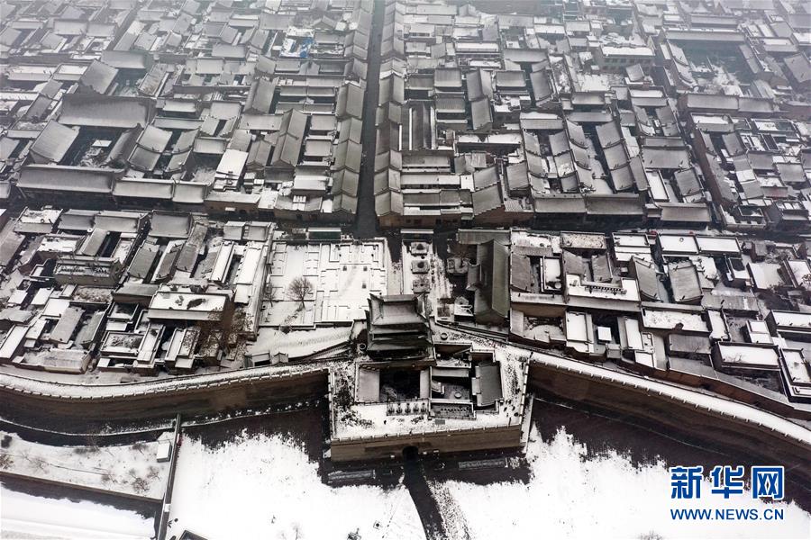 當(dāng)日,山西省平遙縣迎來降雪,雪中的平遙古城銀裝素裹,美景如畫。平遙古城是目前中國保存最完整的古代縣級(jí)城池之一,1997年被列入世界文化遺產(chǎn)名錄。