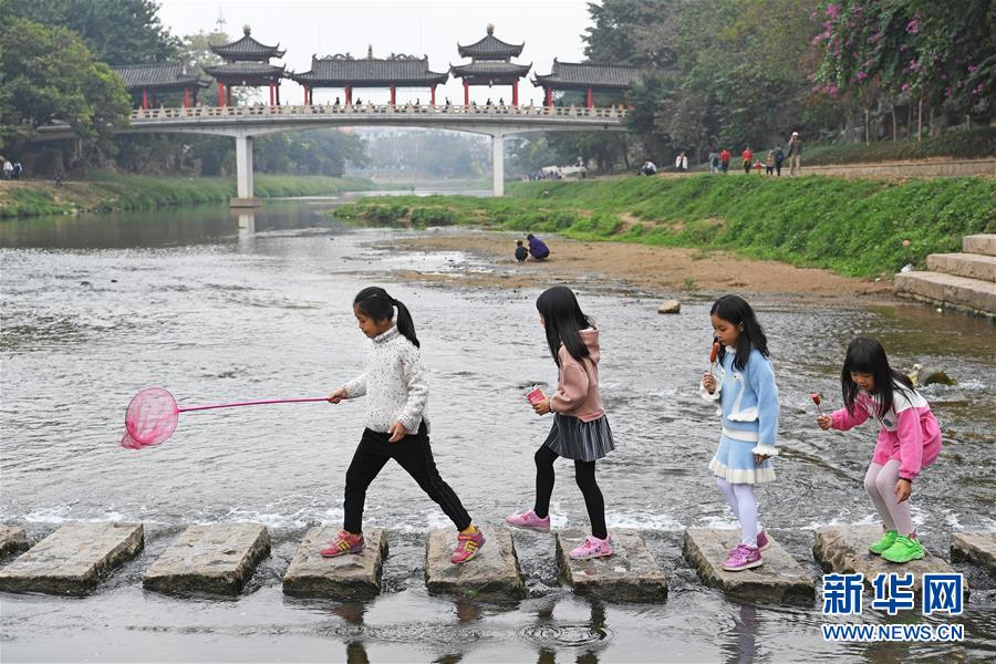 2019年12月22日,小朋友們?cè)谏钲邶垗徍由贤嫠!?新華社記者 梁旭 攝