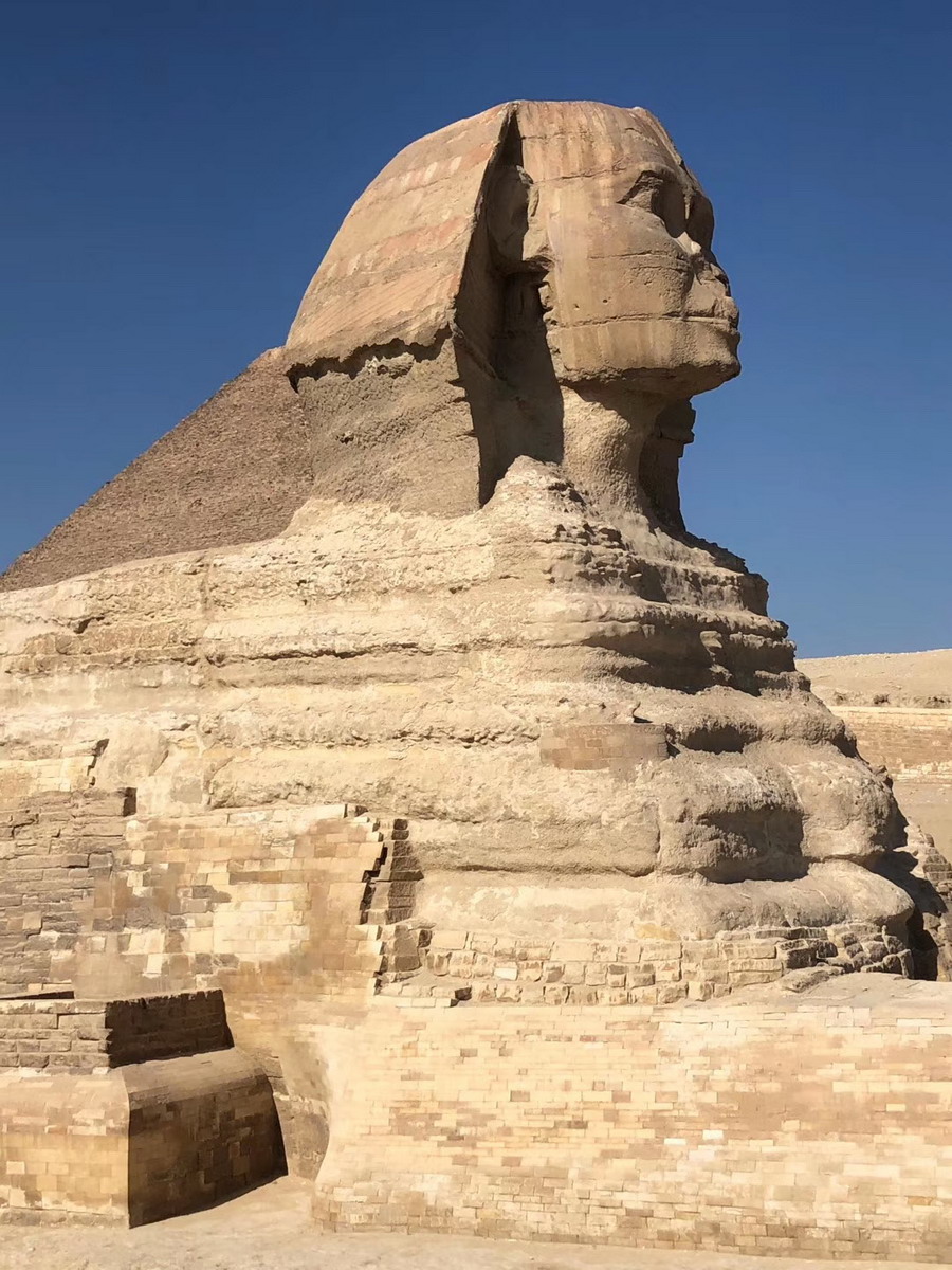 獅身人面像位于埃及吉薩的金字塔墓區(qū),頭像部分一說是古埃及法老哈夫拉按自己的肖像建造。孫衛(wèi)南攝