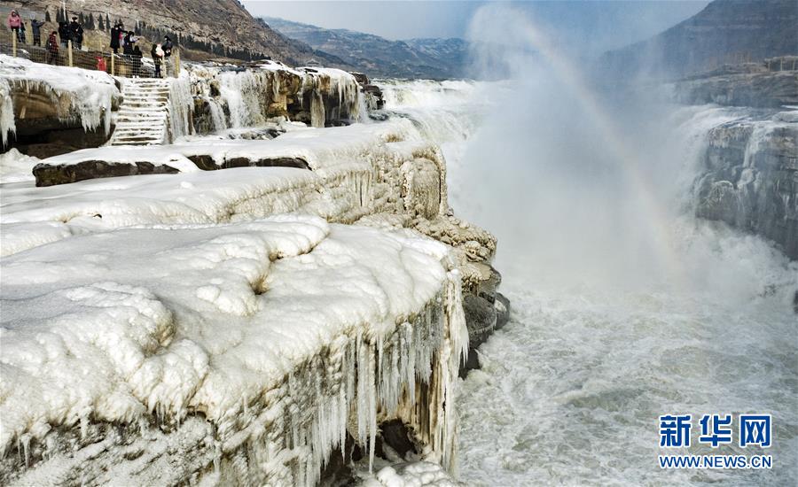 1月12日,游人在陜西黃河壺口瀑布景區(qū)內(nèi)游覽。新華社記者陶明攝