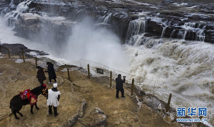 12月14日,游人在壺口瀑布景區(qū)游玩。新華社記者陶明攝