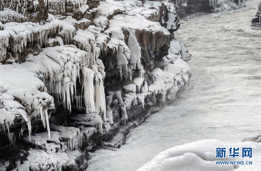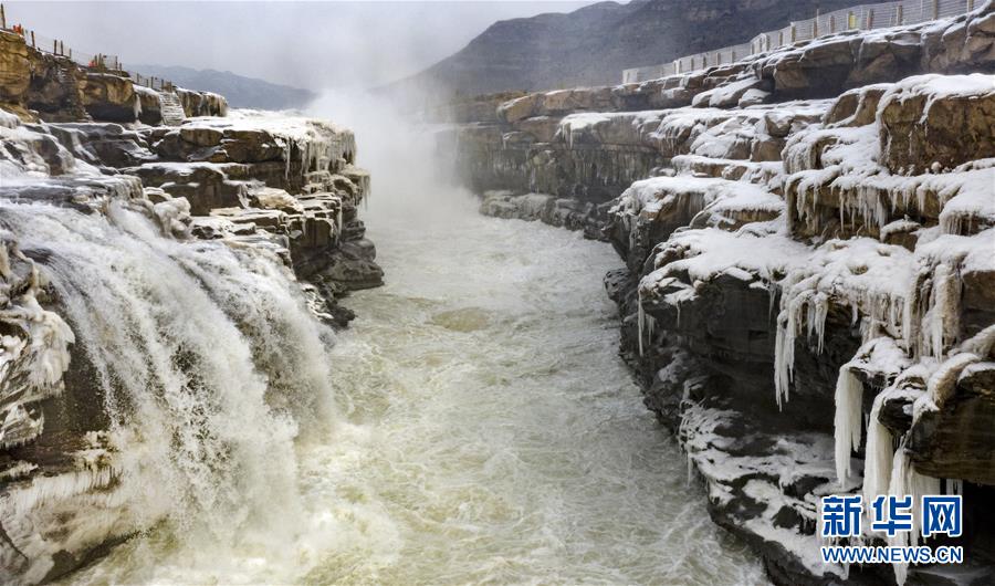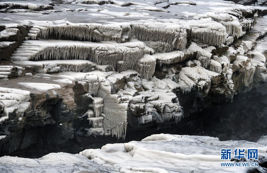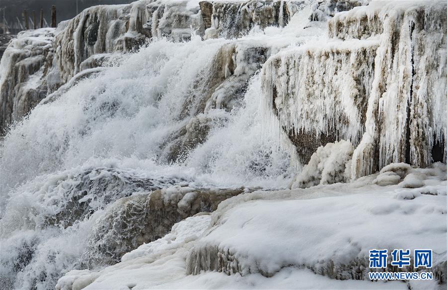 壺口瀑布因氣溫降低形成的景觀(12月14日攝)。新華社記者陶明攝