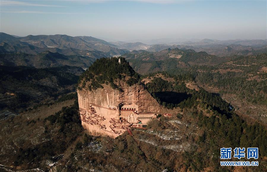 12月26日無(wú)人機(jī)拍攝的麥積山石窟。新華社記者馬寧攝