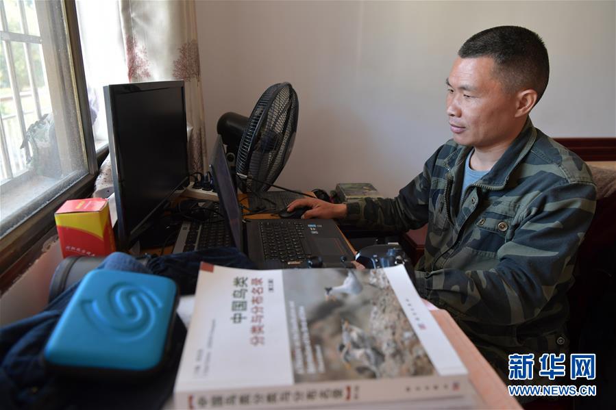 在江西九連山國家級自然保護(hù)區(qū)潤洞保護(hù)站,陳志高在電腦上查看拍攝的照片(1月8日攝)。新華社記者 彭昭之 攝