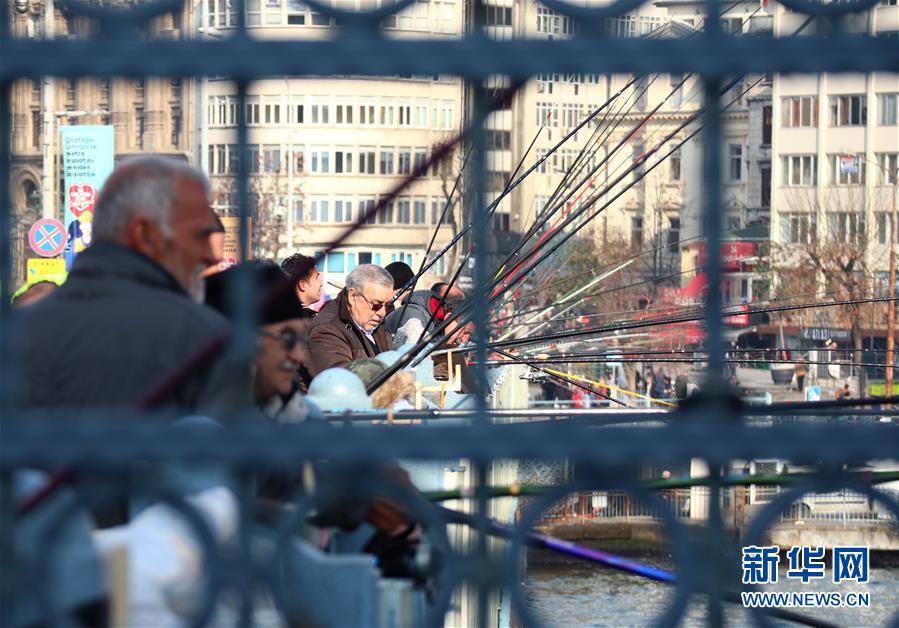 1月14日,在土耳其伊斯坦布爾,人們?cè)诤_叴贯灐?近日,土耳其最大城市伊斯坦布爾的氣溫轉(zhuǎn)暖,不少垂釣愛好者來(lái)到海邊,享受冬日的暖陽(yáng)和垂釣的樂(lè)趣。 新華社記者 徐速繪 攝