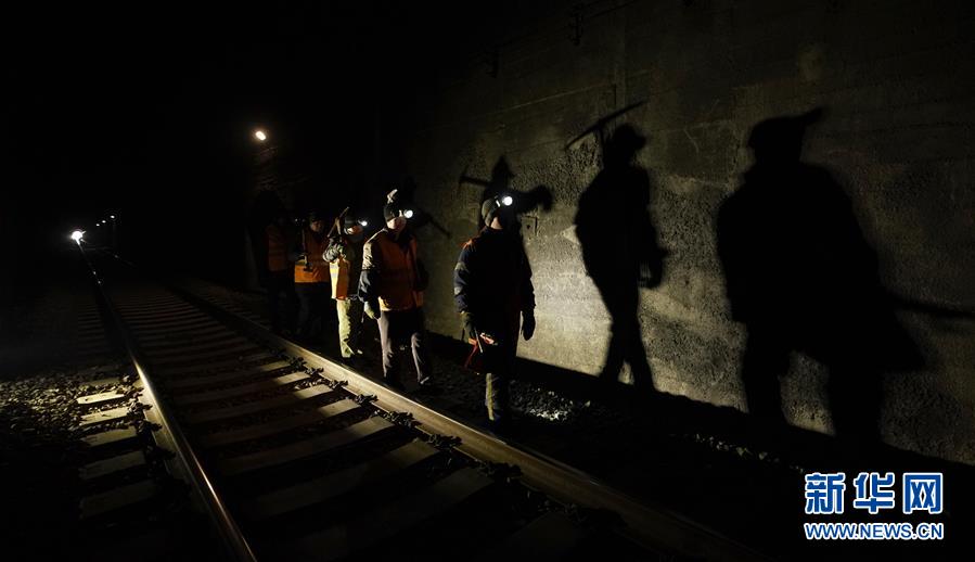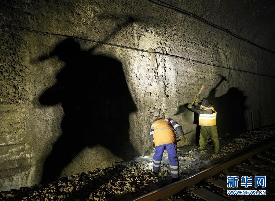 1月6日,在加格達(dá)奇工務(wù)段西羅奇嶺二號隧道,西羅奇維修工隊(duì)工作人員進(jìn)行維修作業(yè)。新華社記者才揚(yáng)攝