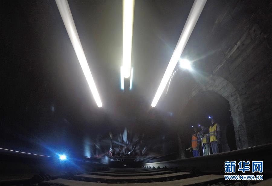 通化通信車間無線工區(qū)鐵路通信工人進(jìn)入全長7088米的灣灣川隧道作業(yè)(1月10日攝)。2020年春運(yùn)1月10日拉開帷幕。新華社記者許暢攝