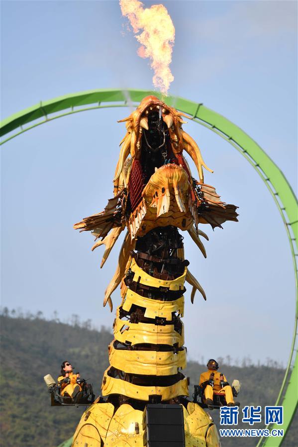1月18日,大型機(jī)械裝置藝術(shù)品“龍馬精神”在珠海長(zhǎng)隆海洋王國(guó)巡游展示。新華社記者 劉大偉 攝