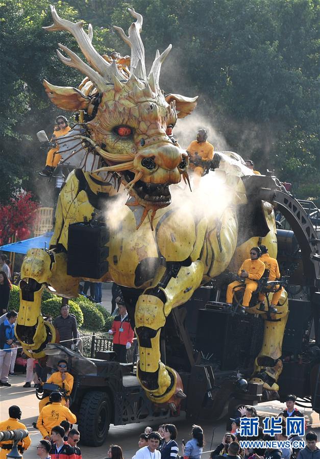 1月18日,大型機(jī)械裝置藝術(shù)品“龍馬精神”在珠海長(zhǎng)隆海洋王國(guó)巡游展示。新華社記者 劉大偉 攝