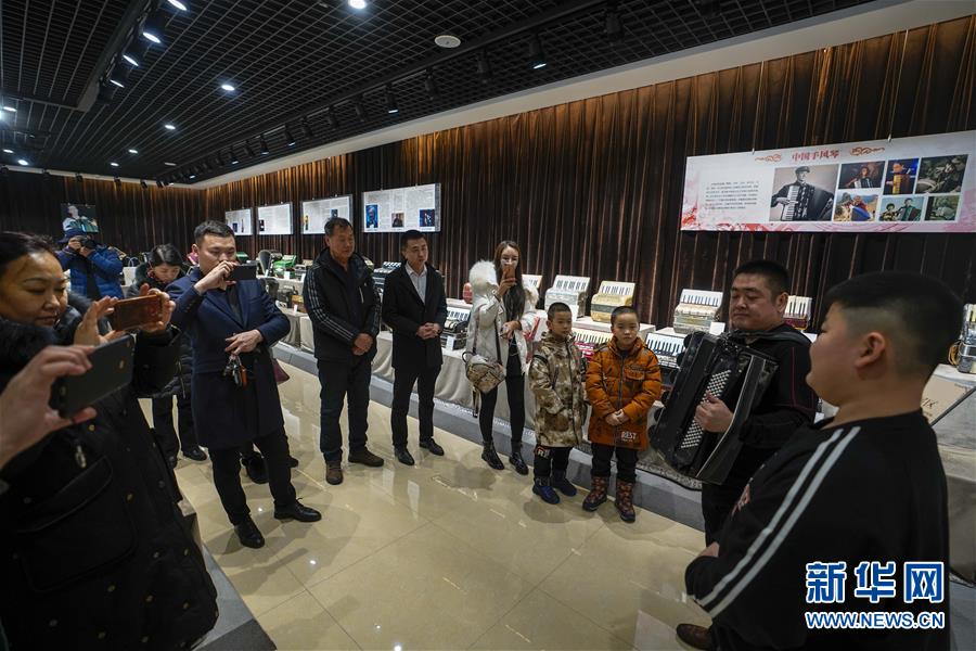 在塔城市手風琴博物館,當地文藝愛好者為游客演奏手風琴(1月21日攝)。新華社記者 趙戈 攝
