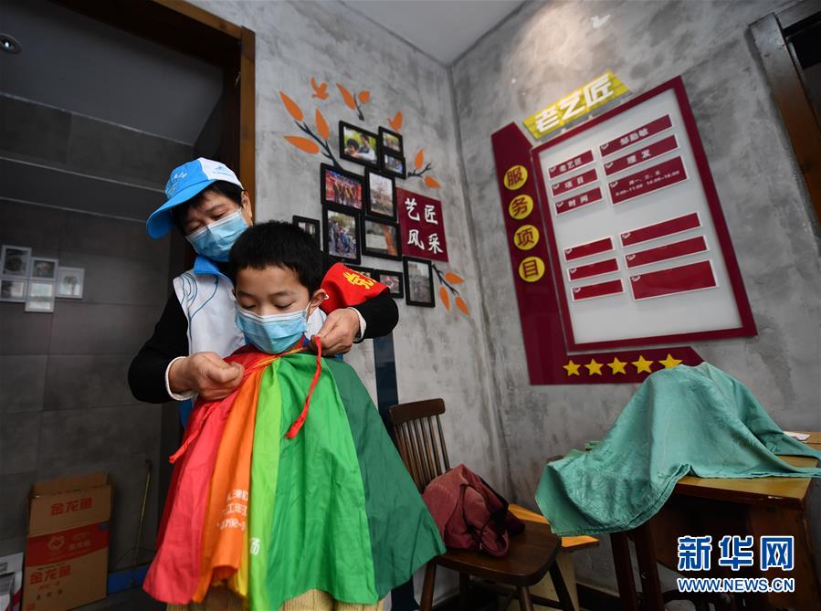 2月24日,鄒勤敏在南昌市青山湖區(qū)商苑社區(qū)服務(wù)中心為一名小朋友理發(fā)。新華社記者 胡晨歡 攝