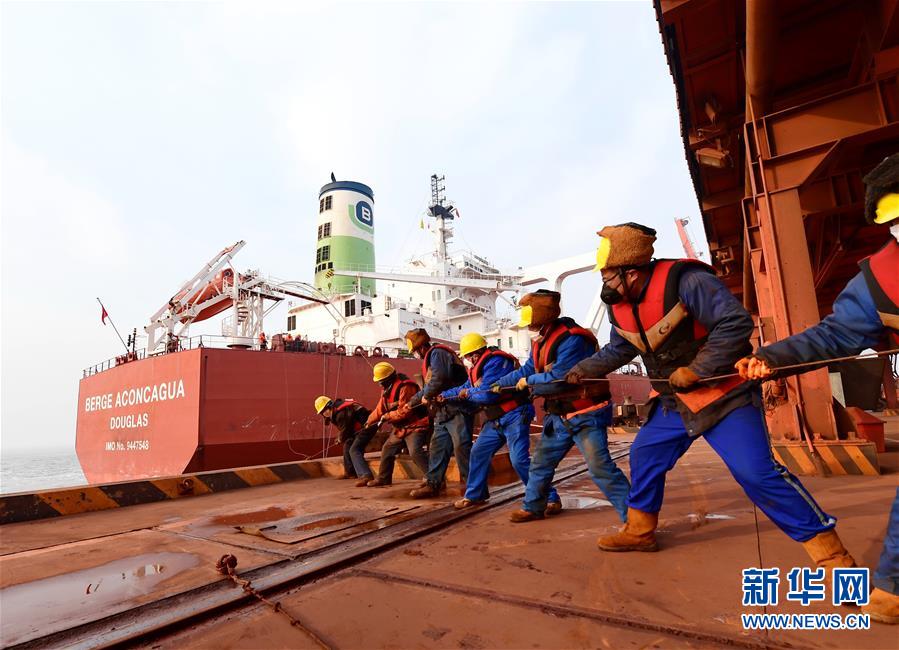 2月24日,在曹妃甸港區(qū)礦石碼頭,工人在為一艘靠岸的40萬(wàn)噸級(jí)輪船拴掛纜繩。 連日來(lái),河北省唐山港曹妃甸港區(qū)為有效防控疫情、保證安全生產(chǎn),采取對(duì)進(jìn)入港區(qū)人員檢測(cè)體溫、對(duì)車(chē)輛進(jìn)行消殺等嚴(yán)格措施,為海、陸交通暢通和物資運(yùn)輸提供保障。 新華社記者 楊世堯 攝