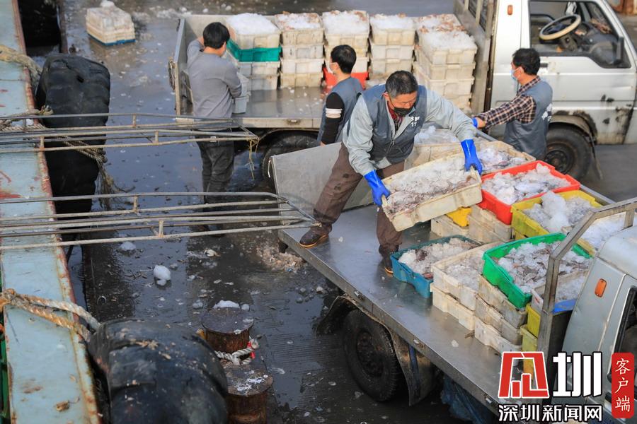 2020年2月24日,浙江舟山國際水產(chǎn)城碼頭,當?shù)氐墓と苏趧偪堪兜臐O船上卸魚貨,現(xiàn)場十分繁忙。