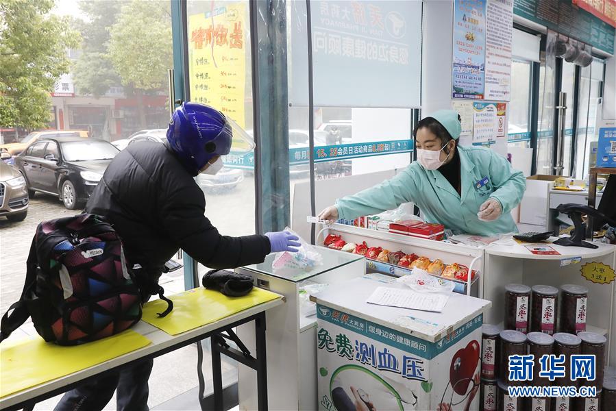 2月22日,王春波將藥品遞給前來買藥的外賣騎手。王春波是武昌天濟大藥房錦繡江南店的一名店員,在武漢下達(dá)“所有小區(qū)全面實施封閉管理”的禁令之后,很多居民買藥成了麻煩事,尤其是獨居的老年人。她知道后,主動聯(lián)系物業(yè)告知大家,如果有需要,她可以上門送藥。現(xiàn)在,她和同事每天要派送100多單藥品,大部分都是“三高人群”服用的藥。很多顧客很感激王春波,“幸虧你們一直開業(yè),東西也齊全,一分錢都沒漲!”王春波說:“關(guān)鍵時期,大家都是在相互幫忙,這就是很平常、很普通的一件事。”新華社記者熊琦攝