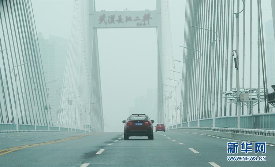 2月26日,劉女士開車送餐經(jīng)過(guò)武漢長(zhǎng)江二橋。新華社記者程敏攝