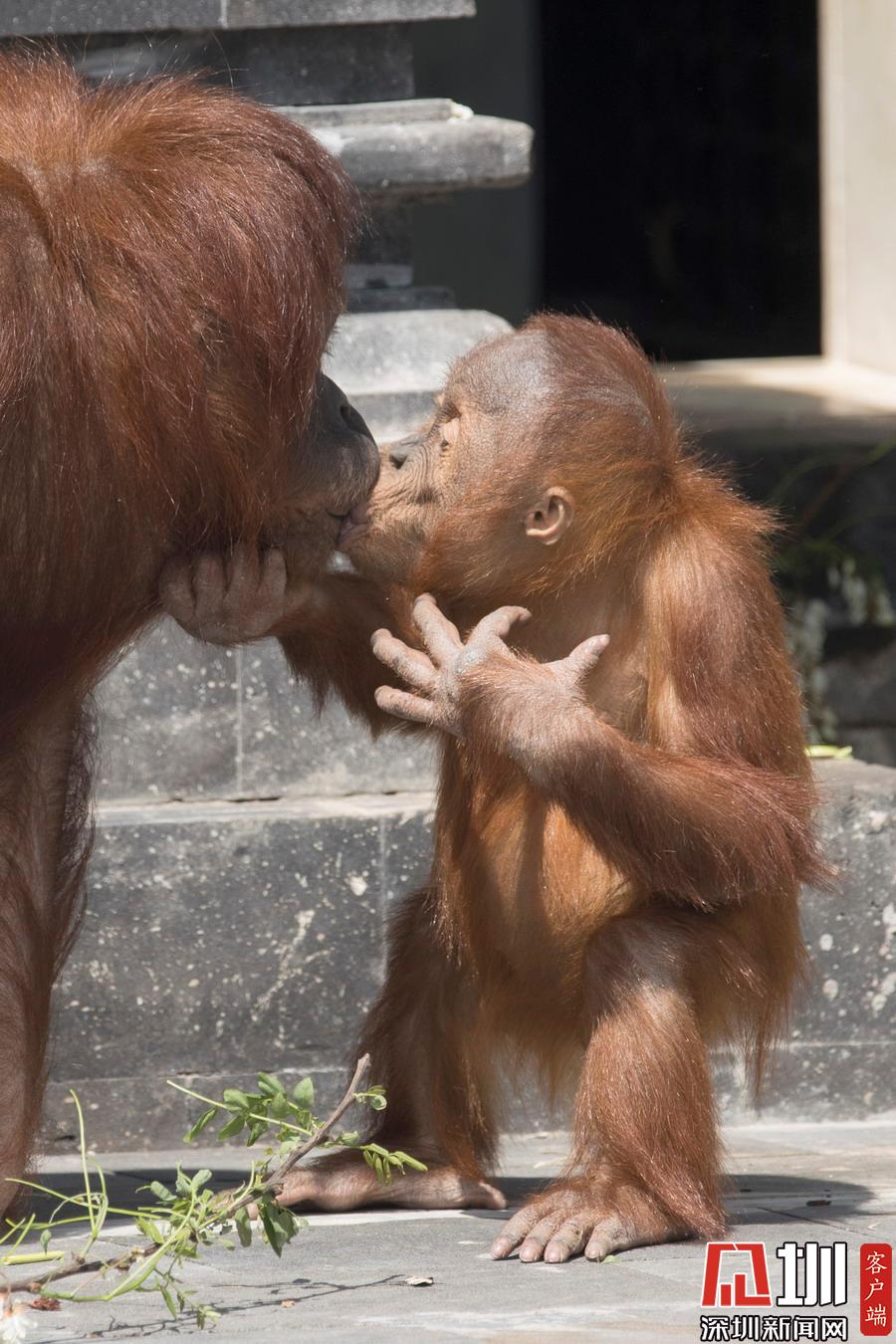 當(dāng)時(shí)三歲的 Berani正獨(dú)自在戶外玩耍,不一會它的媽媽 Sari就找來了,一把拖著娃從草地上回到家門口,然后立刻送上擁抱和親吻,原來猩媽媽是想孩子了呀!