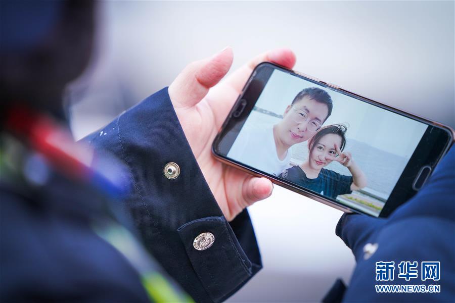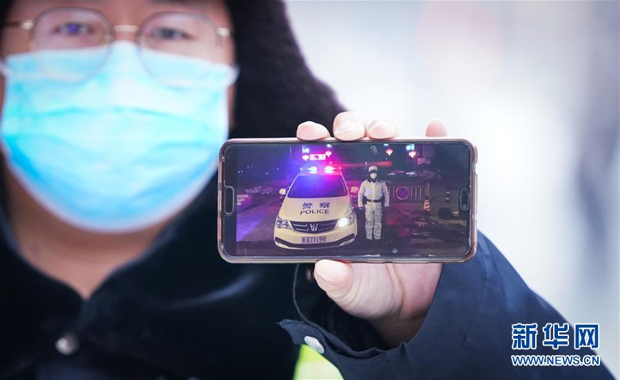 李可心展示手機(jī)里父親李論的工作照(3月1日攝)。父親李論是一名民警,負(fù)責(zé)對轄區(qū)內(nèi)疑似感染人員居住小區(qū)進(jìn)行封控、排查工作。新華社記者王松攝
