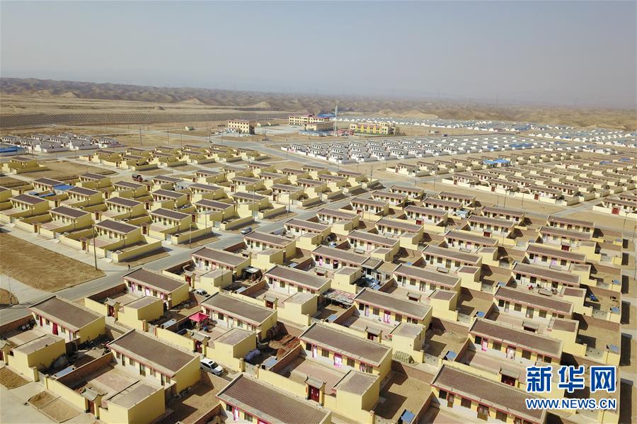 這是3月4日在靖遠縣石門鄉(xiāng)路莊村易地扶貧搬遷搬入地——三灘鎮(zhèn)銀灘村拍攝的居民住宅(無人機照片)。新華社記者 范培珅 攝
