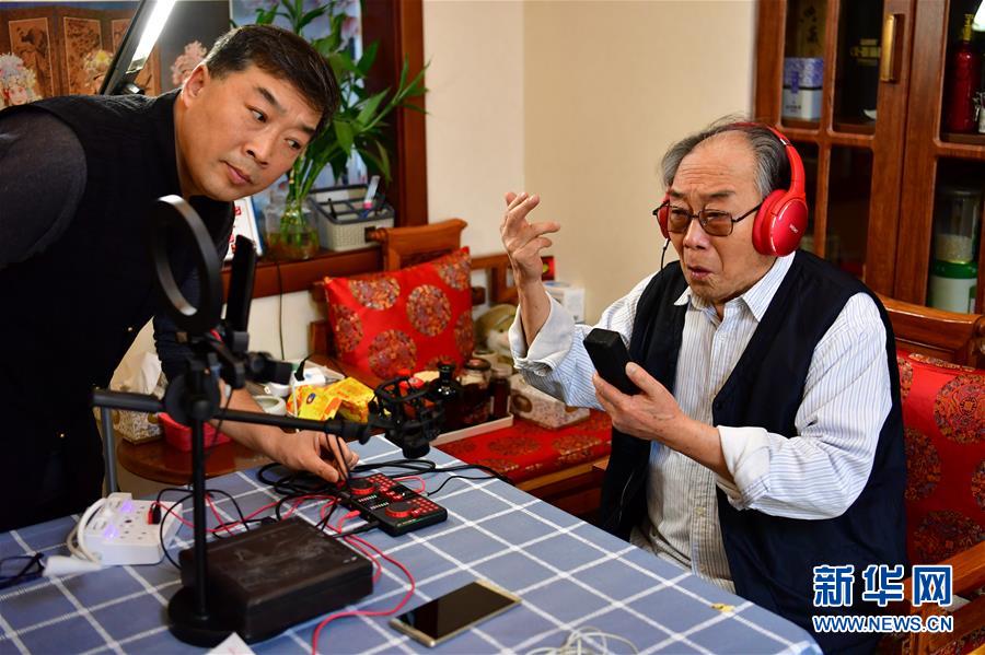閻惠貞(右)在和直播平臺(tái)的戲迷打招呼(3月6日攝)。 新華社記者 曹陽 攝