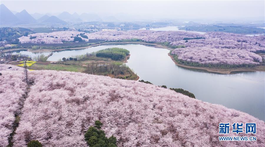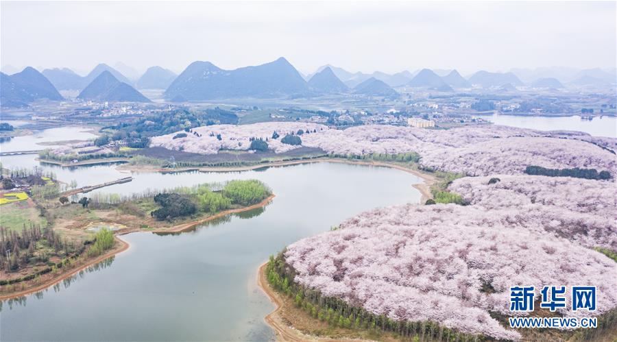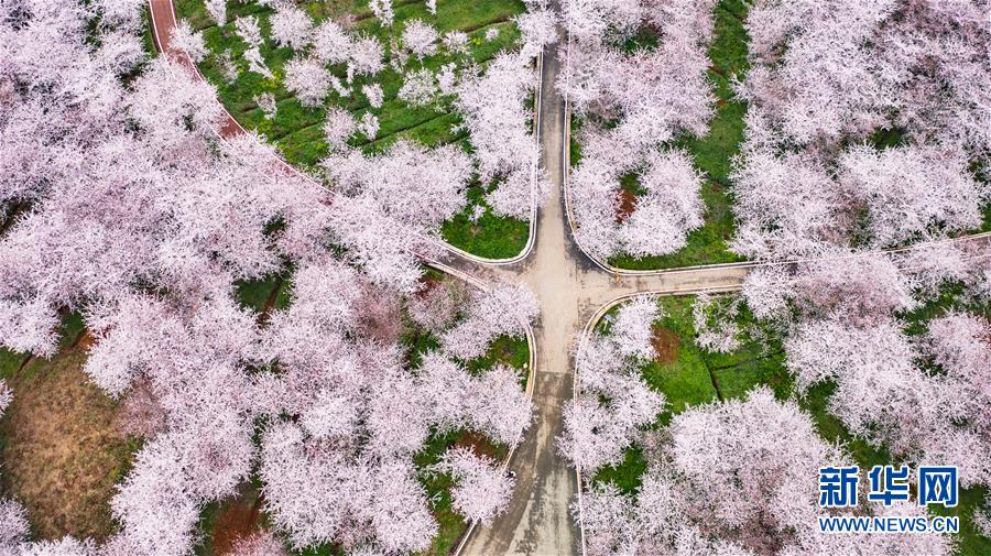 3月12日拍攝的貴安新區(qū)櫻花觀光園風(fēng)景(無人機(jī)照片)。 近日,貴州省貴安新區(qū)櫻花觀光園內(nèi)櫻花競(jìng)相盛開,花團(tuán)錦簇間春意盎然。據(jù)介紹,疫情防控期間,為避免人群聚集,櫻花園暫不接待游客。 新華社記者 陶亮 攝