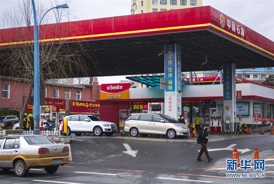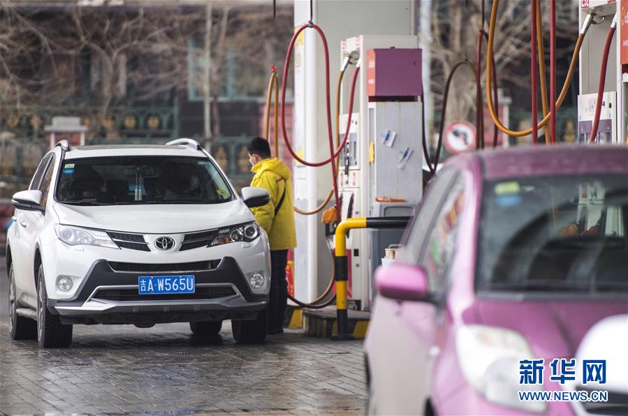 3月17日,車輛在吉林省長春市一處加油站加油。 新華社記者 許暢 攝