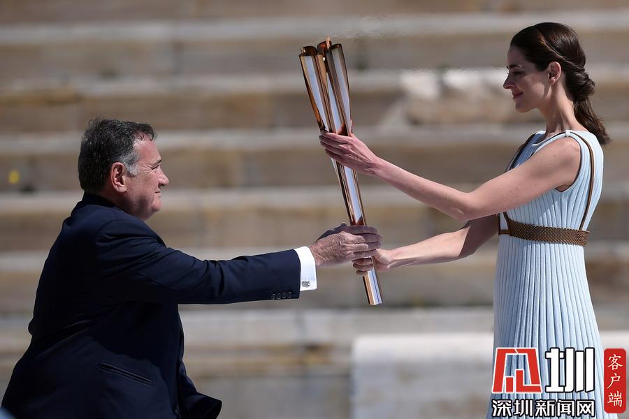 2020年3月18日,2020年東京奧運(yùn)會(huì)火炬交接儀式在希臘雅典帕納辛奈科體育場(chǎng)舉行。