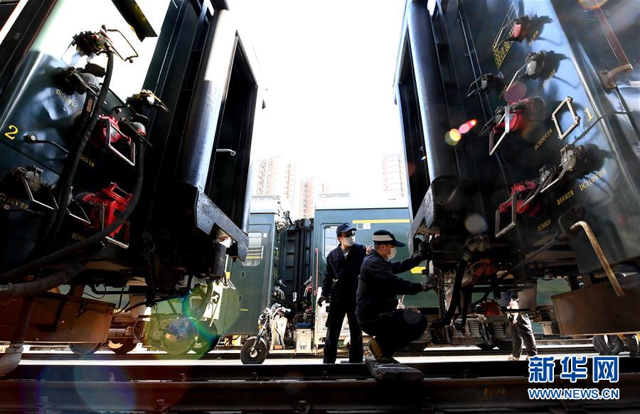 3月19日,鄭州車(chē)輛段客車(chē)檢車(chē)員在對(duì)車(chē)鉤進(jìn)行狀態(tài)記錄和測(cè)量。新華社記者 李安 攝