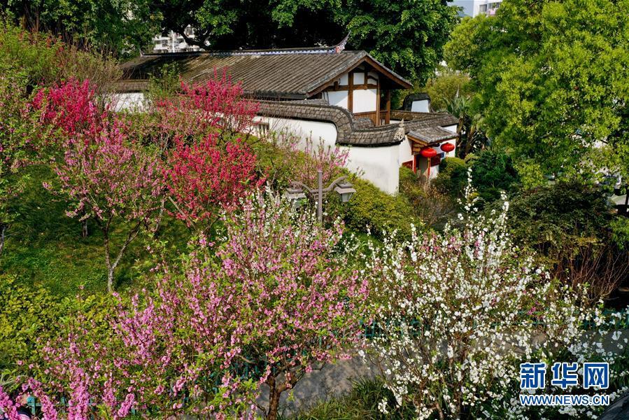 3月22日,在福州烏山歷史風(fēng)貌區(qū),繁花綠樹掩映著一處傳統(tǒng)古厝(無人機照片)。近日,福建省福州市烏山、三坊七巷等歷史文化街區(qū)內(nèi)草木吐綠,鮮花盛開,掩映著一座座傳統(tǒng)古厝,更顯濃濃春意。新華社記者姜克紅攝
