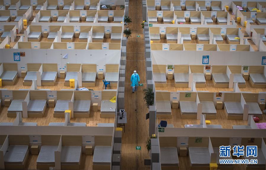 3月8日,武漢體育中心方艙醫(yī)院送走最后一批痊愈患者,正式休艙。這是工作人員在艙內(nèi)進行清理作業(yè)。新華社記者肖藝九攝