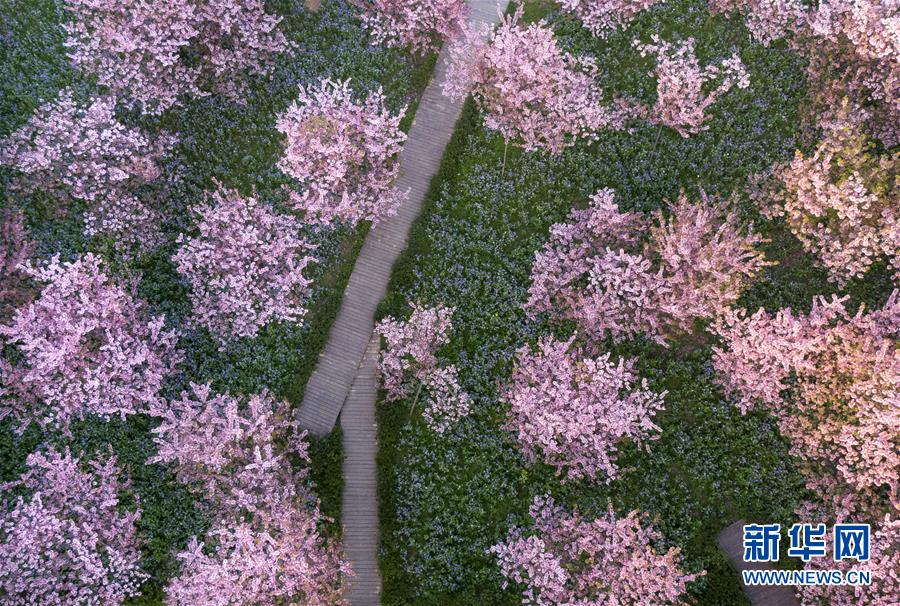 這是3月14日拍攝的武漢東湖磨山櫻園景色(無人機(jī)照片)。近日氣溫漸升,武漢東湖磨山櫻園里的櫻花漸次盛開,帶來春天的氣息。新華社記者熊琦攝