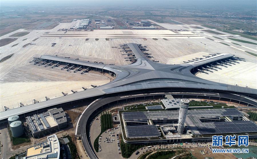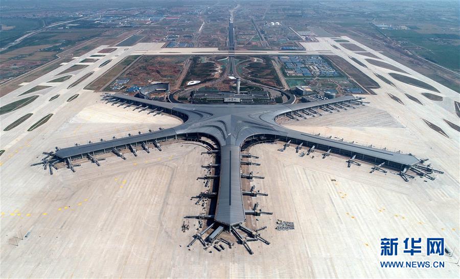 2019年6月12日無人機(jī)拍攝的建設(shè)中的青島膠東國際機(jī)場。新華社記者李紫恒攝