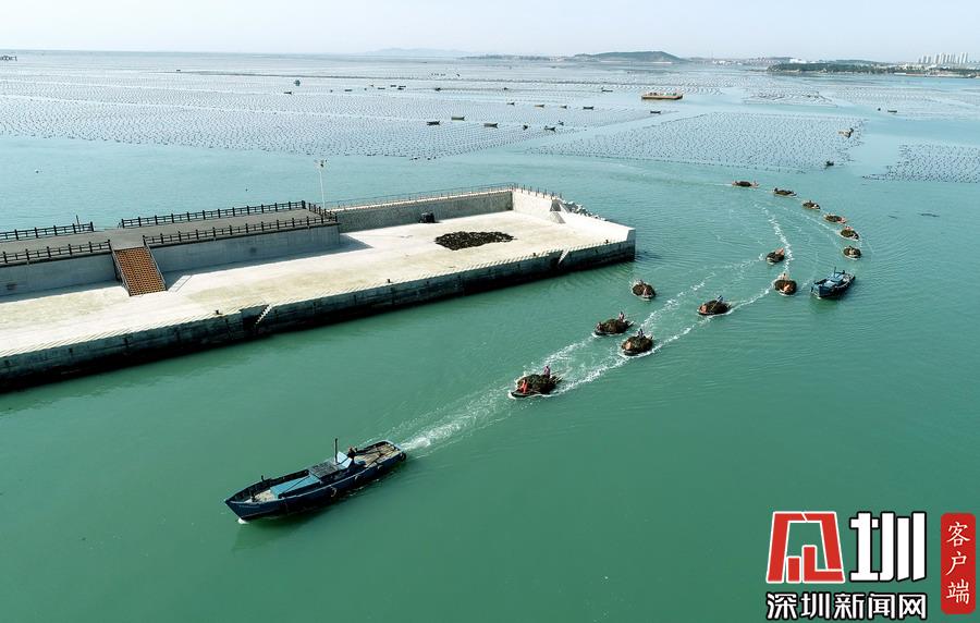 目前正是遼寧省大連市長??h扇貝和魚類收獲的季節(jié),長??h小長山島海域經(jīng)典國家級(jí)海洋牧場呈現(xiàn)出一片繁忙的豐收景象。