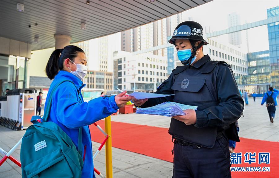 3月30日,呼和浩特市第三十五中學(xué)工作人員在校門口收回學(xué)生假期健康登記表。當(dāng)日,內(nèi)蒙古自治區(qū)全區(qū)高三和初三年級開學(xué)復(fù)課。新華社記者連振攝