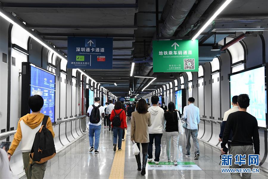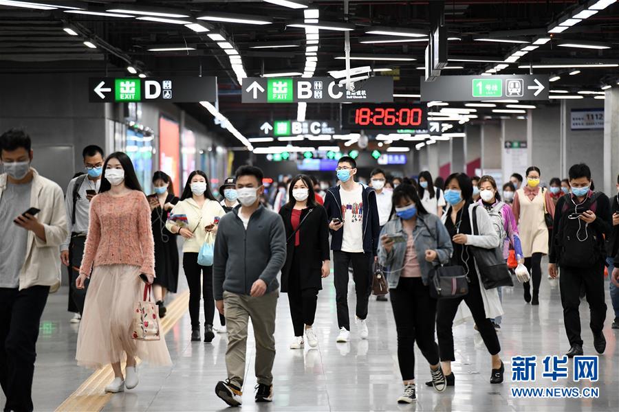 3月18日晚高峰時段,在深圳地鐵車公廟站,乘客按照車站指示牌進站。新華社記者梁旭攝