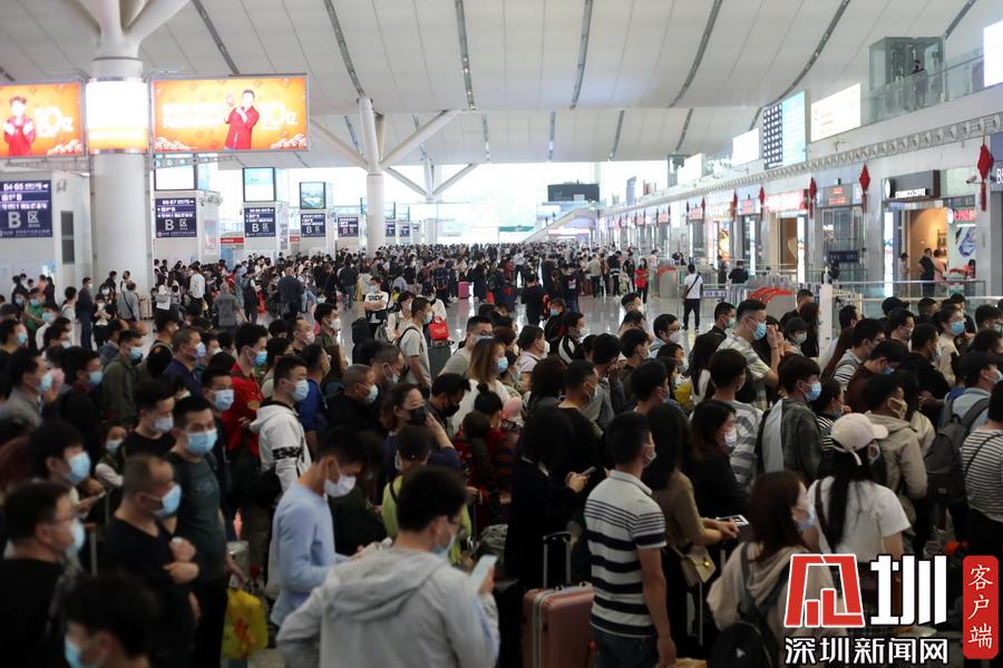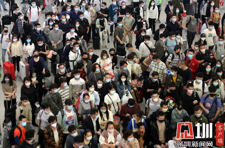 2020年3月28日,廣東深圳,周末的深圳北站客流量增大。