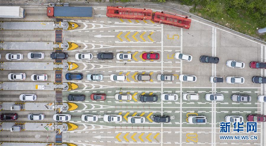 3月24日,在武漢西高速收費(fèi)站交通卡點(diǎn),返漢車(chē)輛排隊(duì)等候入城(無(wú)人機(jī)照片)。當(dāng)日,湖北省新冠肺炎疫情防控指揮部發(fā)布通告說(shuō),湖北省除武漢市以外地區(qū),將于3月25日起解除離鄂通道管控,武漢市將于4月8日起解除離漢離鄂通道管控措施。隨著近日武漢部分企業(yè)逐漸復(fù)產(chǎn)復(fù)工,進(jìn)入武漢的返城務(wù)工人員陸續(xù)增多,車(chē)輛在武漢西高速收費(fèi)站交通卡點(diǎn)有序排隊(duì)返回武漢。工作人員對(duì)返城人員檢查體溫,并核查證明健康的“綠碼”和身份證后放行。新華社記者才揚(yáng)攝