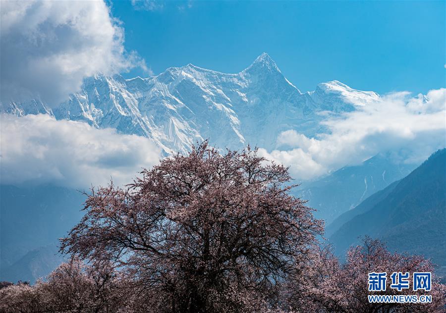 南迦巴瓦峰下盛開的桃花(4月1日攝)。新華社記者侯捷攝