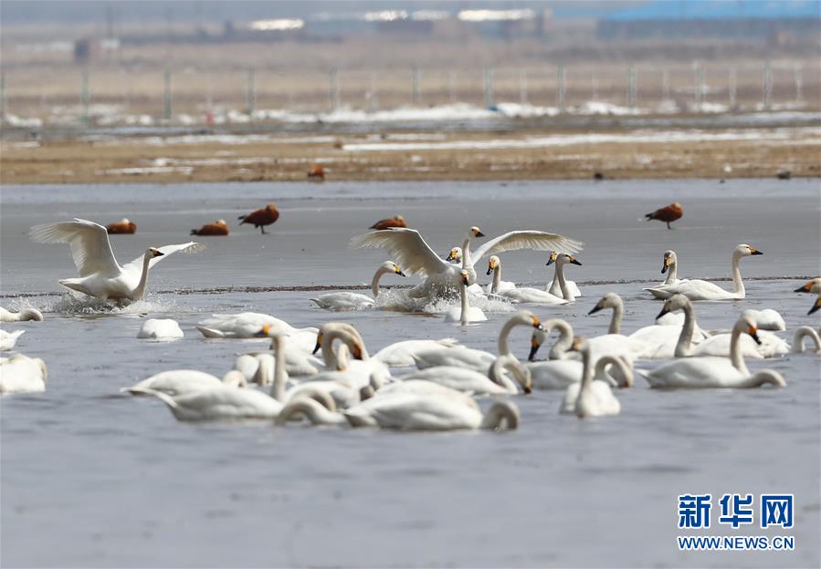 這是4月1日在張北縣黃蓋淖國家濕地公園拍攝的候鳥。 新華社記者楊世堯攝