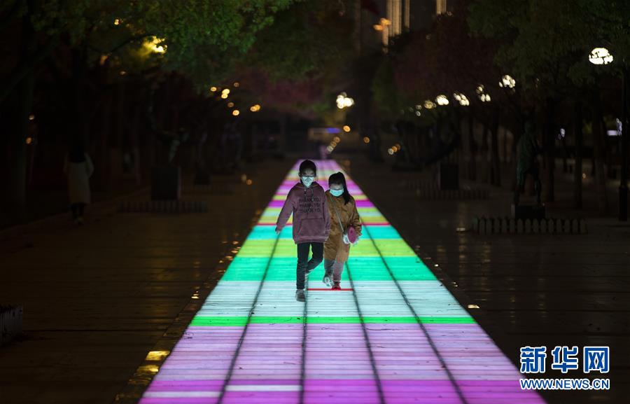 4月1日,在武漢天地廣場,幾個小朋友在玩耍。新華社記者費茂華攝