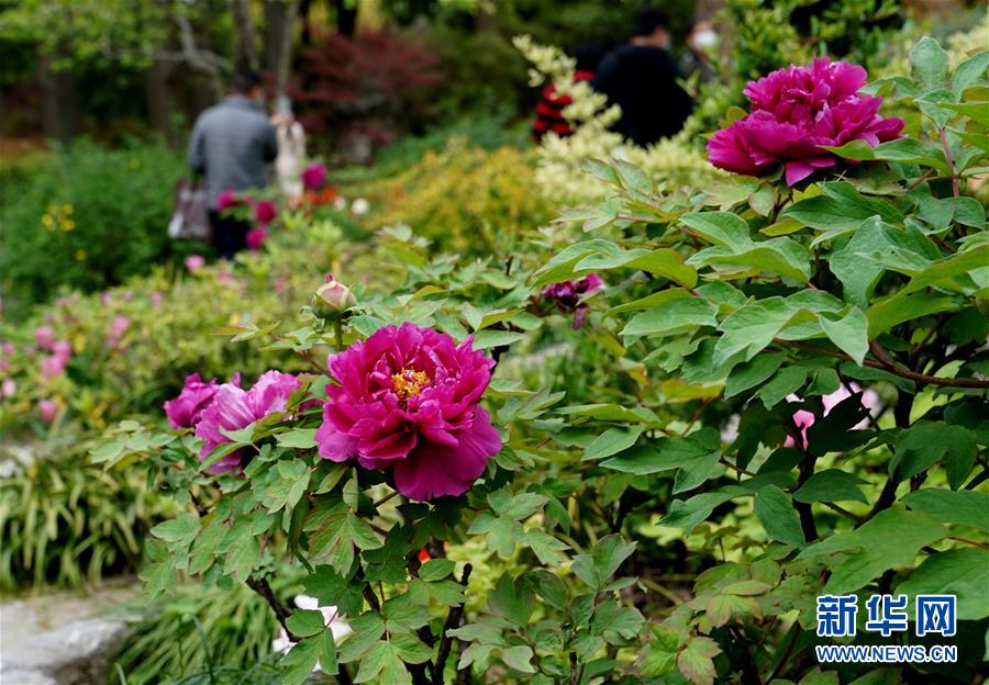 4月6日在位于上海松江的江南古典園林——醉白池拍攝的牡丹花。 新華社記者 劉穎 攝