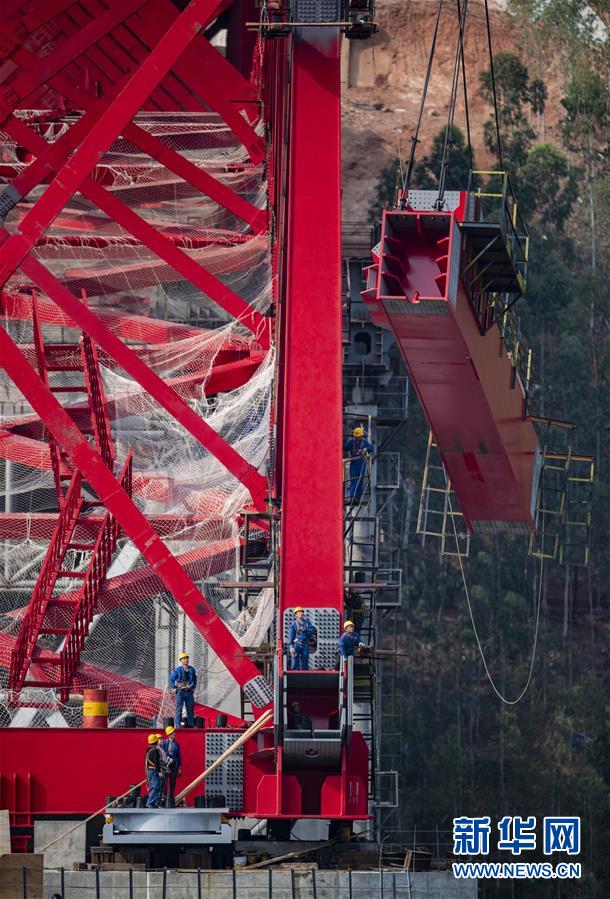 4月8日清晨,工人在中老鐵路元江特大橋上進(jìn)行鋼桁梁架設(shè)作業(yè)(無(wú)人機(jī)照片)。4月7日,中老鐵路全線重點(diǎn)控制性工程——元江特大橋迎來(lái)關(guān)鍵節(jié)點(diǎn),主橋鋼桁梁正式“邁”過(guò)154米高的主橋墩,這是世界同類鐵路橋梁第一高墩。元江特大橋位于云南省元江縣,采用上承式連續(xù)鋼桁梁跨越峽谷,全長(zhǎng)832.2米,建成后,其249米的主跨也將刷新國(guó)內(nèi)同類橋梁跨度紀(jì)錄。新華社記者江文耀攝