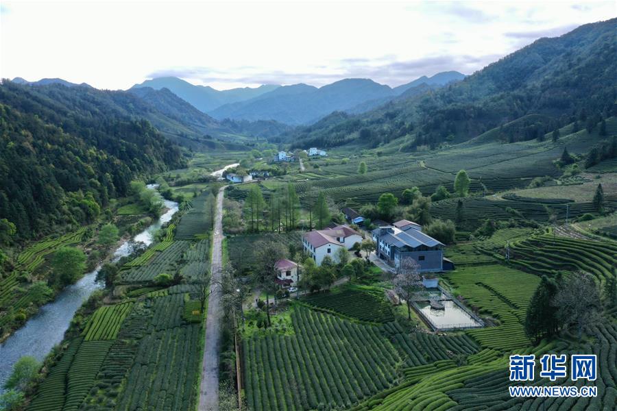 武夷山國(guó)家公園內(nèi)茶園青翠,即將進(jìn)入采摘期(4月1日攝,無(wú)人機(jī)照片)。新華社記者姜克紅攝