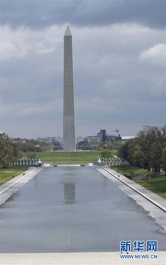 4月1日,在美國首都華盛頓,一名男子在華盛頓紀念碑附近跑步。新華社記者劉杰攝