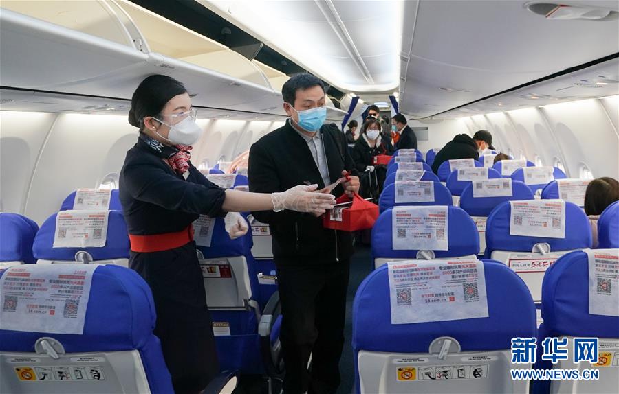 4月8日,在武漢天河國際機場,東方航空MU2527航班旅客登機。新華社記者程敏攝